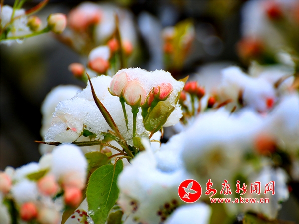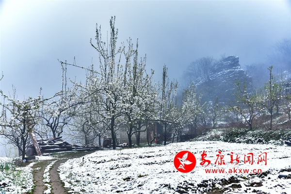 日前,一場洋洋灑灑的春雪,讓平利縣城關鎮龍頭村太平寨展現出春雪壓梨花的美景。據悉,太平寨有梨樹十余畝,與絞股藍栽植套種,年產酥梨萬余斤。(王韜 攝)