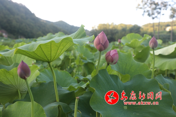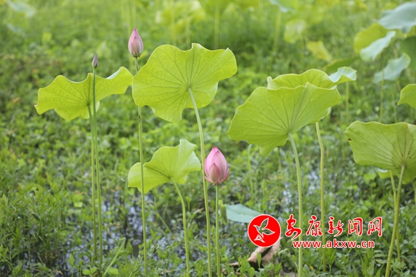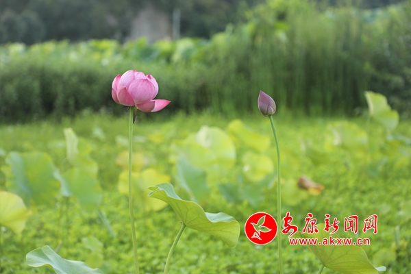 荷葉碧綠,荷花盛開。在七月驕陽的照耀下,伴隨著鳥叫和蟬鳴,漢濱區沈壩鎮花紅村的灼灼荷花如期而至,與美麗鄉村形成一道靚麗的獨特風景。(鄭時根 攝)