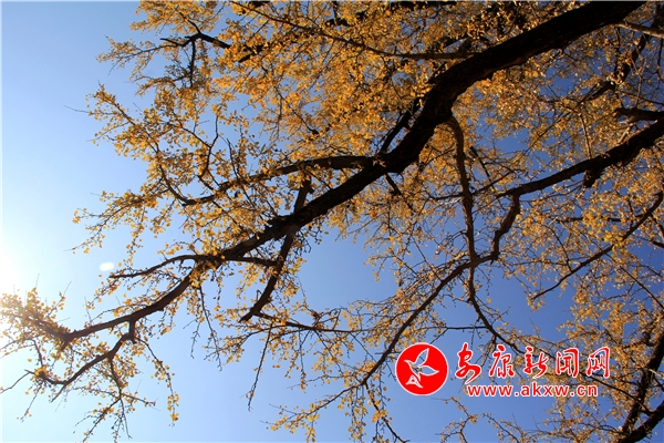 初冬時節,白河縣構朳鎮東坡古銀杏樹迎來最佳觀賞期,在陽光的照射下,仿佛身披“金甲”。此樹的樹齡約1700余年,高約50余米,腰圍近26米,16個成年人才能合抱住,前來觀光拍照的游客絡繹不絕。(通訊員 雷超 孫佳) 3XE安康新聞網