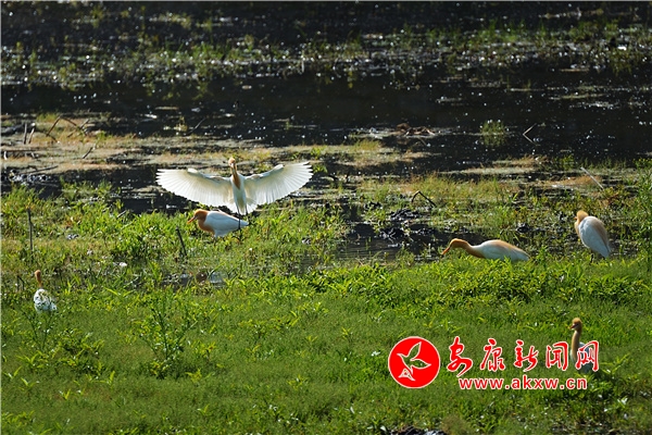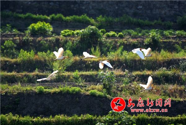 石泉城關鎮生態環境持續向好,在絲銀壩村草池灣翻耕過的農田里,30余只牛背鷺時而展翅,時而降落,盡情嬉戲玩耍,撒歡覓食。(圖文/董長松)