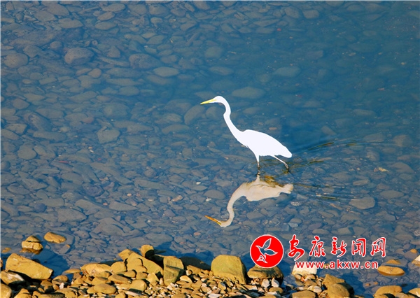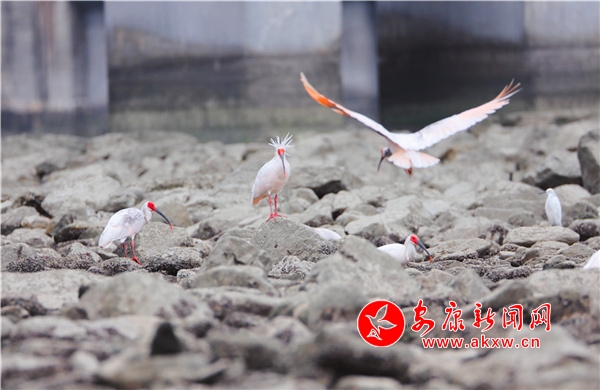 連日來,石泉縣城漢江邊的一處處河水淺灘,迎來大量朱鹮、白鷺、蒼鷺等水鳥覓食,它們時而展翅翱翔,時而嬉水歡舞,享受大自然綠色生態帶來的愜意。(圖文/許兵)