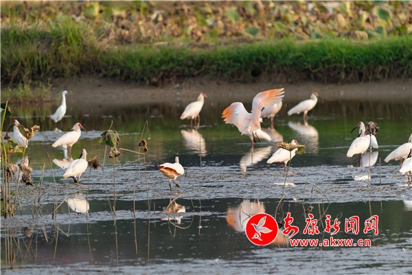 近日,有攝影愛好者在漢陰縣雙乳鎮(zhèn)千畝荷塘景區(qū)拍到50余只朱鹮的曼妙身影。他們時而悠閑覓食,時而閑庭散步,時而展翅高飛,潔白的羽毛,艷紅的頭冠和黑色的長嘴,成為秋日里一道靈動的風(fēng)景。