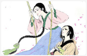 這是中國古代清明節習俗。秋千,意即揪著皮繩而遷移。它的歷史很古老,最早叫千秋,后 為了避忌諱,改之為秋千。古時的秋千多用樹椏枝為架,再栓上彩帶做成。
