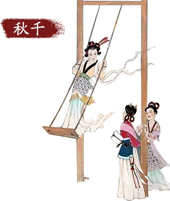 蕩秋千這是中國古代清明節(jié)習俗。五代王仁裕《開元天寶遺事》載“天寶宮中至寒食節(jié)竟豎秋千,令宮嬪輩戲笑以為宴樂。帝呼為半仙之戲,都中士民因而呼之”,宋代宰相文彥博詩《寒食日過龍門》,詩中描寫為 “橋邊楊柳垂青線,林立秋千掛彩繩。”秋千,意即揪著皮繩而遷移。它的歷史很古老,最早叫千秋,后為了避忌諱,改之為秋千。古時的秋千多用樹椏枝為架,再拴上彩帶做成。后來逐步發(fā)展為用兩根繩索加上踏板的秋千。蕩秋千不僅可以增進健康,而且可以培養(yǎng)勇敢精神,至今為人們特別是兒童所喜愛。