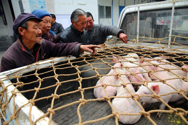 3月7日,花石村的貧困戶正在領(lǐng)取免費(fèi)豬仔安康新聞網(wǎng)訊(通訊員 楊寧)“今年開(kāi)年后,鎮(zhèn)上和部門的干部多次來(lái)我家。先是到我家來(lái)了解情況,春節(jié)還給我們送來(lái)了米……