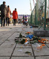 12月1日,市民陳先生打來熱線反映,市民在金州廣場中心雕塑邊亂扔垃圾現象非常嚴重。15∶30分記者趕到金州廣場,發現因為天氣晴好,大量市民在廣場上休閑曬太陽,可是幾乎每隔百米就有一堆游人亂扔的垃圾,廣場中心雕塑邊更成了“重災區”。各種果皮、廢紙幾乎布滿了雕塑下的臺階,想繞開曬太陽的市民又不踩到垃圾都沒法上到雕塑頂臺。