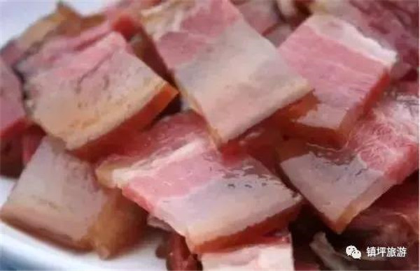 鎮坪臘肉是在柴火堆上熏出來的純天然綠色食品。把分割成條塊的鮮豬肉,抹上鹽、辣椒面、花椒面等佐料,放在大盆里腌上幾天,等到各種佐料的味都滲進肉里去了,再取出來掛在在柴火堆上面。把豬肉掛在火炕上方的橫木上,用煙火來熏。過十天半月,肉里的鹽分熏干了,肉變成了金黃色,臘肉也就熏好了,里面混雜著松柏枝的香味,那模樣雖是不好看,然則吃起來,哪一個香啊,味道最是絕佳。LSj安康新聞網