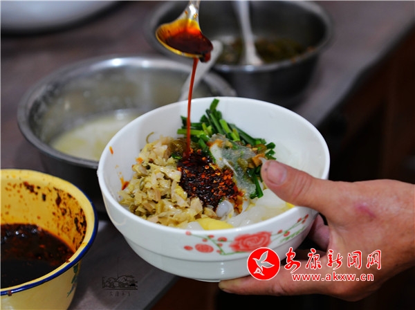 安康面魚兒,也有兩種不同的吃法,一種是漢陰的,叫“科馬古得兒”,面魚兒是白色的,用米粉做成,澆醋湯子吃;另一種是安康的,叫“漿水面魚兒”,面魚兒有黃色、白色兩種,黃色用包谷面,白色用米粉或菱角粉做成,配著漿水、漿水菜、大蒜辣子、炒韭菜和油潑辣子吃。7XB安康新聞網