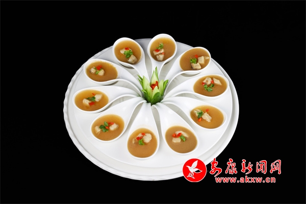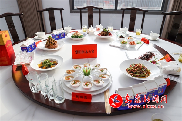 “紫陽洄水魚宴”由8個涼菜,即:香酥小魚、干煸牛肉、茶香魚皮、鱘魚凍、撈汁七彩花生、酸辣四拼、雙色變蛋、涼拌折耳根;8個熱菜即:茶香鱘魚、紫蘇魚片、熗鍋鯉魚、釀羊肚菌、辣子雞、臘味三拼、魚頭燉黑豆腐、當(dāng)歸白蘿卜燉羊肉;一個湯菜:魚丸湯;3道小吃即:魚肉餃子、茶香餅、紫菜魚餅;主食:金銀米飯、酸菜面和飯后水果拼盤組成。(通訊員 李勝璋)vQP安康新聞網(wǎng)