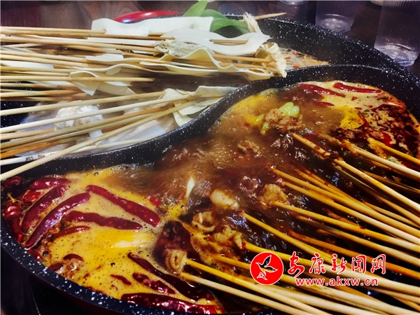 安康新聞網訊(記者 張喬 牟慶紅 )定制的碗筷,定制的煮鍋,八零后夫妻用心烹調,打造溫馨串串店。在市區靜寧農貿市場旁,有一家叫簽游記的串串店,冬天的夜色襯……