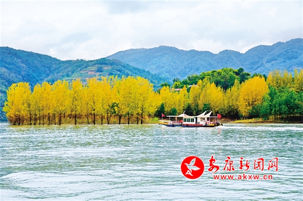 10月3日,秋日的瀛湖如詩如畫,吸引眾多游客前來打卡。周濬 攝 WCB安康新聞網