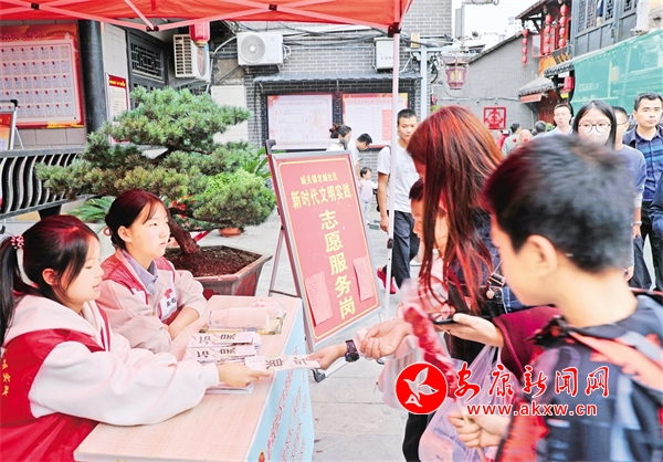 中秋國慶節假期,石泉縣在景區景點以及人流、車流集中地安排志愿服務點,積極組織文明實踐志愿者,為游客提供旅游咨詢、文明引導等服務。董長松 攝WCB安康新聞網