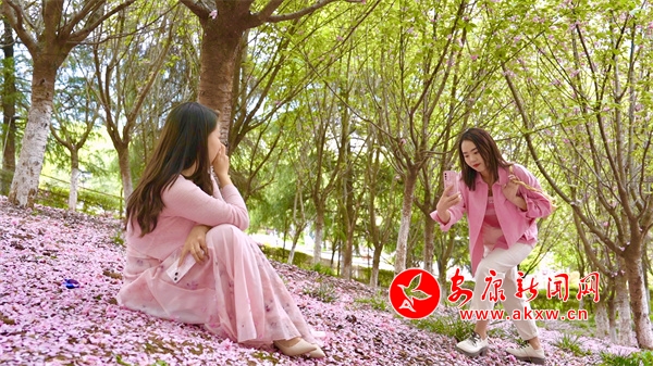 在春日的暖陽下,一片片櫻花林仿佛被粉色的云朵覆蓋,每棵櫻花樹都像是穿上了粉白相間的華服,優雅而浪漫。微風輕輕拂過,花瓣便像雪花般紛紛揚揚地飄落,它們在空中旋轉、跳躍,如同粉色的精靈在跳舞。行走其間,繽紛 “櫻花雨”伴著浮動的“櫻花香”,讓人心醉花海。