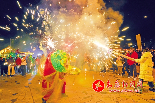 陜北說書游客記錄精彩瞬間猜拳行令漢調二黃表演燒火獅子賓客圍爐而坐全國冬季“村晚”示范展示暨石泉縣第十一屆漢水庖湯會文化旅游活動日前在石泉縣中壩作坊小鎮……