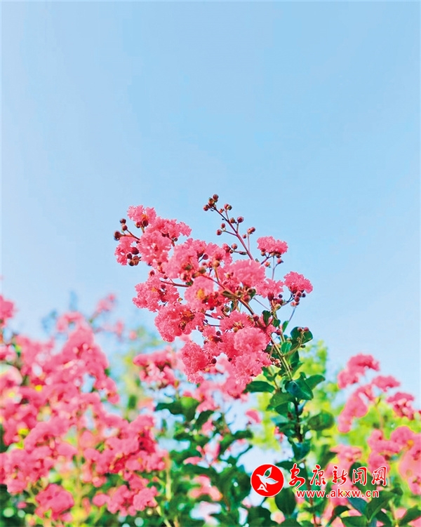 “獨(dú)占芳菲當(dāng)夏景,不將顏色托春風(fēng)。”當(dāng)上百株紫薇花在鳳凰山里絢爛枝頭時(shí),我與它們?cè)诖竽蠝舷嘤觥!?/div>