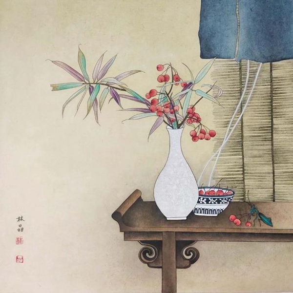 簡而言之,林晶女畫家的工筆花鳥畫,無論在構(gòu)圖上、線條上、設(shè)色上都彰顯出自己的“功夫”。她的每一幅畫,都那樣艷而不俗、淡而有味,讓人有百看不厭的舒暢感。