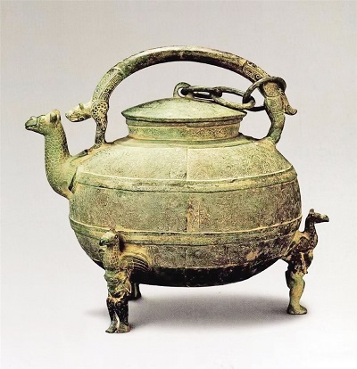 東漢許慎在《說文解字》里有言:“盉,調味也。從皿,禾聲。” 王國維在《說盉》中言:“余謂盉者,蓋和水于酒之器,所以節酒之厚薄也。”可見盉是古代酒器,是用來調和米酒,加水來沖兌酒味濃淡的。從考古發現看,多分布于山西、陜西、河南、江蘇、安徽等地,尤以江淮地區分布最多。西周中期以后,盉常與盤共出,說明盉的功能有所轉變,從酒器變為水器,不論作為酒器還是水器,“盉”與人們的日常生活總是密切相關,它是“茶壺”的鼻祖,現代用的茶壺即是由它發展而來。