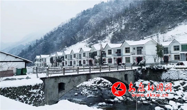 愈往深山走去,愈是銀裝素裹。發如雪,天作襯。色彩在這里失去了顏色,整個世界只剩下黑與白的構圖。山澗中露出的黑巖,連綿著,將青絲的線條起伏蜿蜒地勾勒而出。山腳下一排排整齊的村民安置房,已顯出冬眠酣睡的樣子。樹林里帶著一層朦朧,在群山連綿中起伏著,為這雪天獻上了一幅絕美的水墨畫卷,也更增加了幾分神秘。